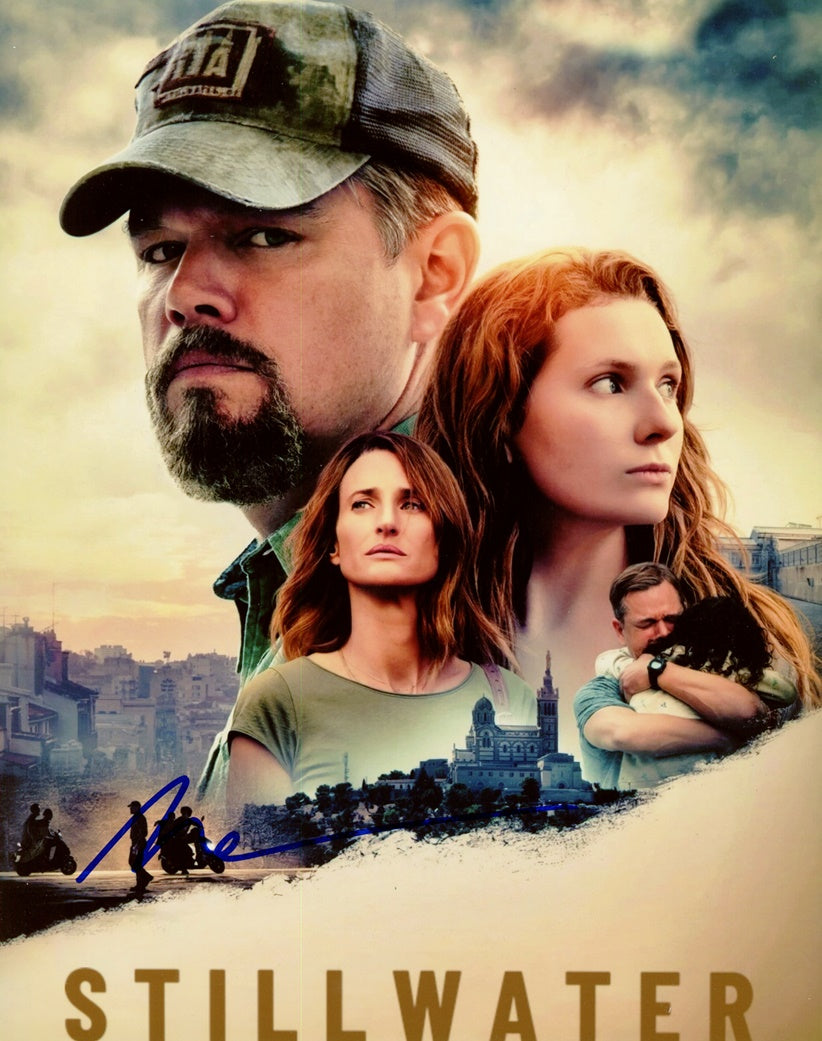 This photo was signed in-person at a screening for Stillwater in New York City on December 4, 2021.
